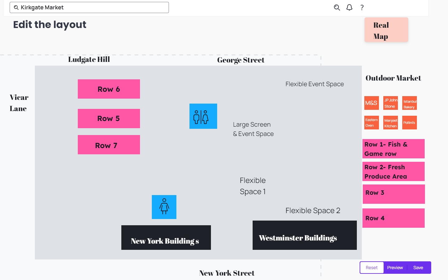 The following game was created using bitsy. It is a narrative game in which the player interacts with vendors and a customer to find a way out of Kirkgate Market. Along the way, the player finds out how the vendors and customers are finding Kirkgate Market and their perspectives of the market. The narrative is based on the feedback research of from the vendors and customers and data on the internet about the market.